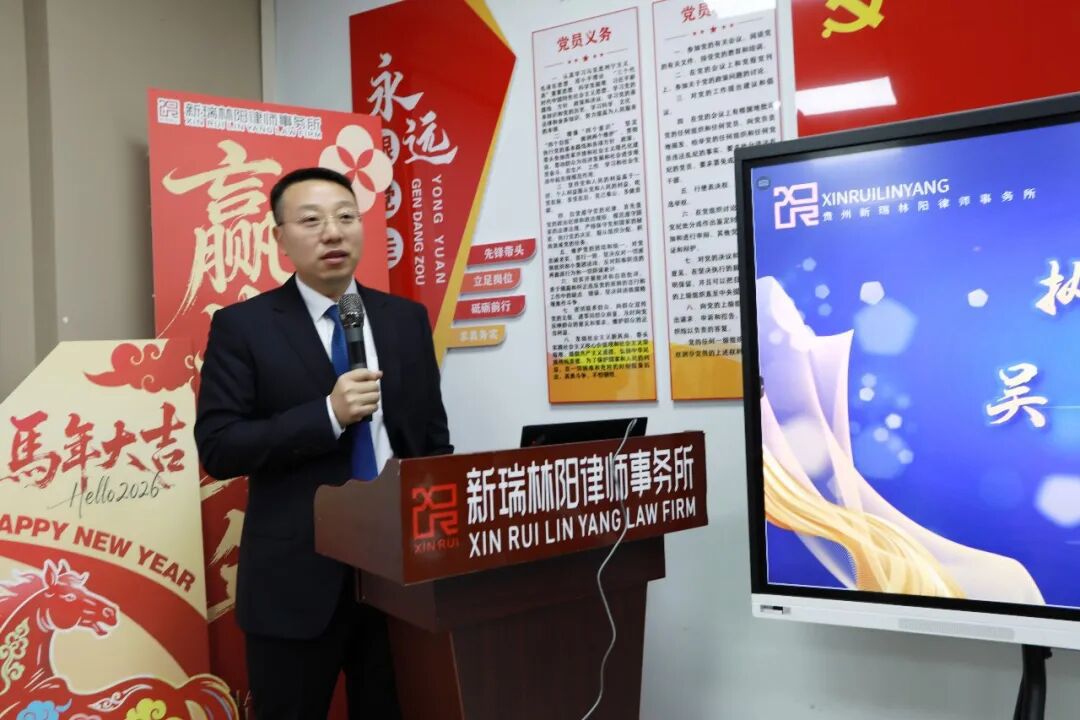 2026年2月7日,贵州新瑞林阳律师事务所2025年终会暨2026迎新会在律所会议室圆满举行。贵阳总所与龙里分所60余位同仁欢聚一堂,共辞旧岁、共贺新春,共商发展、共赴新程。