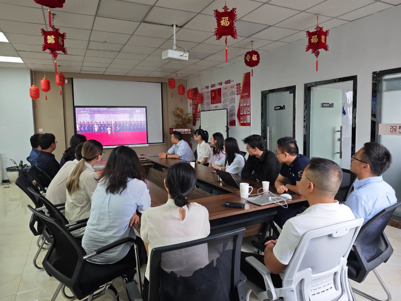 9月3日上午,纪念中国人民抗日战争暨世界反法西斯战争胜利80周年大会在北京天安门广场隆重举行,贵州新瑞林阳律师事务所组织全体成员在会议室共同观看盛大的阅兵式直播,同世界人民一道纪念这个伟大的日子。
