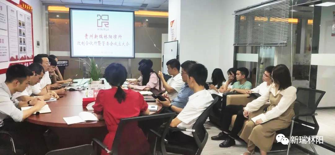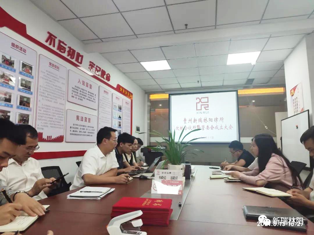 8月13日下午,贵州新瑞林阳律师事务所改制为合伙所暨律所管理委员会成立大会在律所会议室圆满召开。律所主任王化洋、执行主任吴旭梦及合伙人石兴敏、张晓晓、秦世达列席会议,全体执业律师、实习律师、律师助理和行政人员参加了本次会议。会议由执行主任吴旭梦主持。